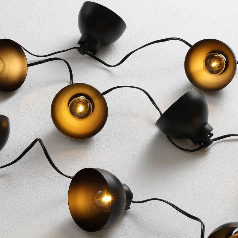 These delicate shaded string lights are the perfect addition to an outdoor space that leans coquette or a little eclectic. The pretty white metal shade features a wavy design that provides style that will soften your space. Pair a few of these plug-in string lights with cream and wicker furniture for a cohesive look.