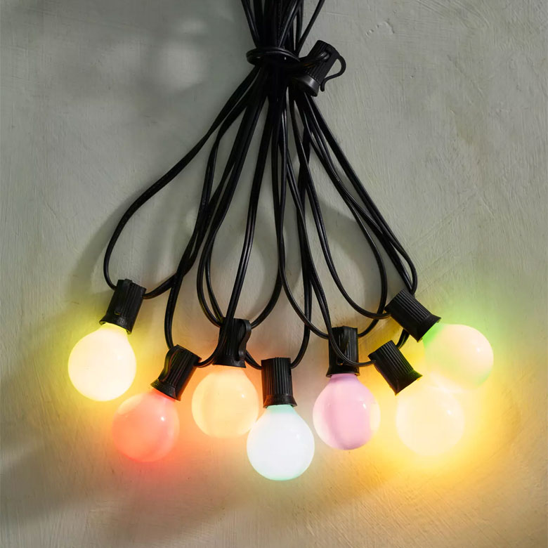 Add a subtle pop of color to the backyard with these pastel cotton candy-colored garden string lights from Anthropologie! The LED globe bulbs are good for outdoor and indoor use, too. Note: Because these bulbs are meant to be completely customizable, you do have to purchase the socket strand separately. But once you have that, you can mix and match any colors from their Stargazer line.