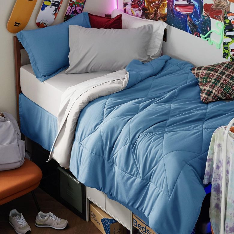 It’s always a good idea to grab a few extra sets of sheets in addition to a full dorm room bedding set. This comprehensive collection from Brooklinen comes in a slew of easy-to-pair shades and patterns, so you can mix and match them with ease. Each piece included is made from the brand’s iconic sateen fabric, which is woven using 480 thread-count long-staple cotton for a silky surface that boasts a luminous sheen and cooling appeal.