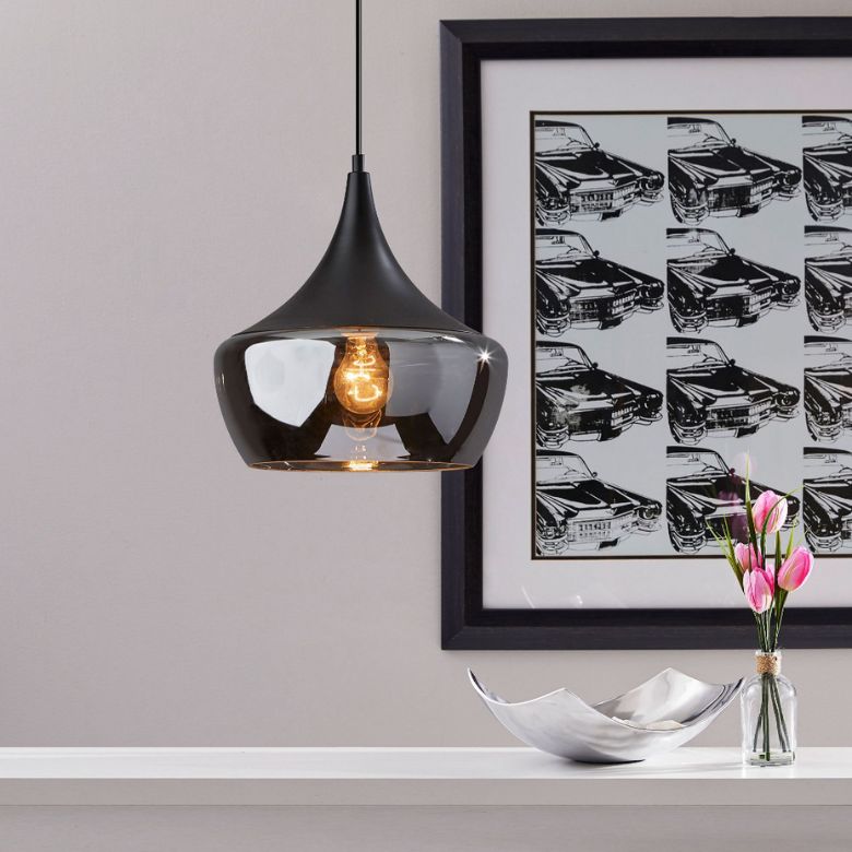 A smoked glass shade brings a touch of mystery and elegance to this simple yet sophisticated pendant light. It also features an adjustable cord that will allow you to place it above tabletops at any height.
