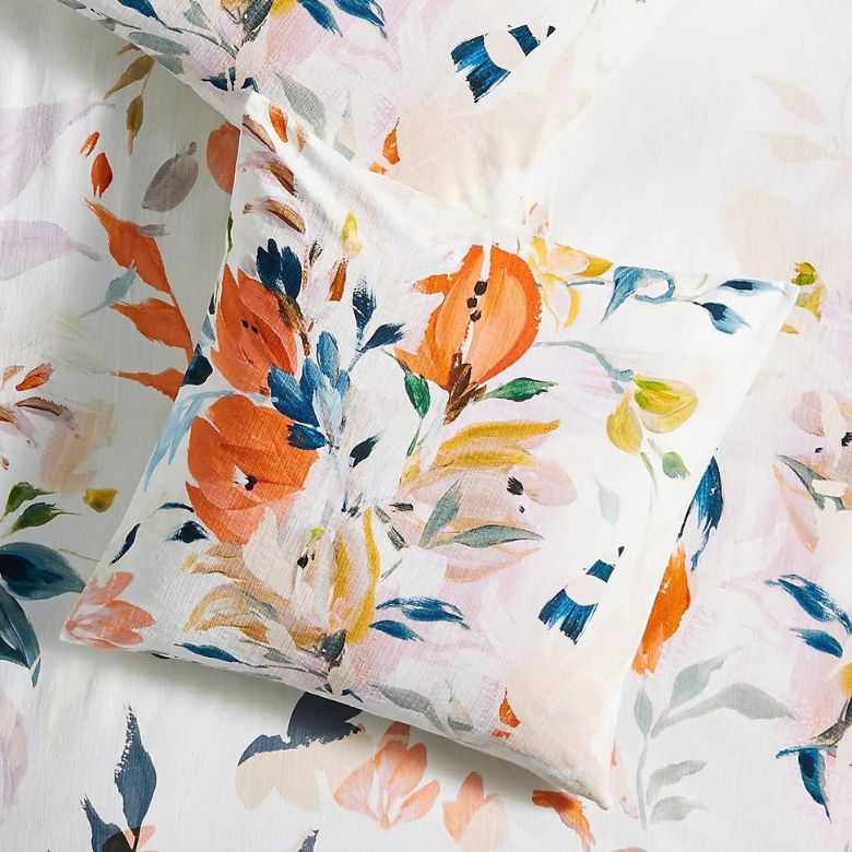 This sweet and sophisticated floral pattern looks hand painted but is actually printed and washable. Toss a few on solid-colored bedding for a fun boost or pair with the matching duvet if you want to go all in.