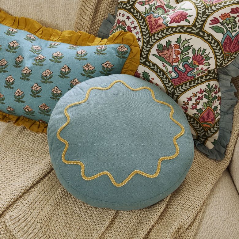 These lovely blue pillows come in several sizes and would complement traditional or modern bedding. They are 100% cotton and super soft to the touch. The fabric meets the Oeko-Tex standard, too, which tests for thousands of harmful chemicals.