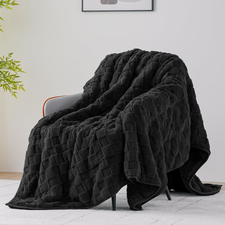 For extra coziness, a sherpa fleece weighted blanket provides superior softness. This top-rated blanket features a sherpa texture on one side and a smooth fleece texture on the other. Customers say it offers perfect weight distribution, keeps them warm in the winter, and provides an embrace that feels like a big hug.