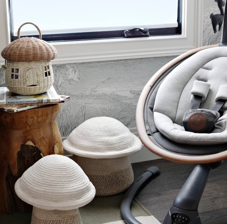 The couple installed plenty of seating, including a Maxi-Cosi Cassia Swing for the reading corner, a glider for Mom and Dad to rock and feed, and a daybed that Drew lobbied hard for (don’t miss Drew’s other recommended essentials for new parents).