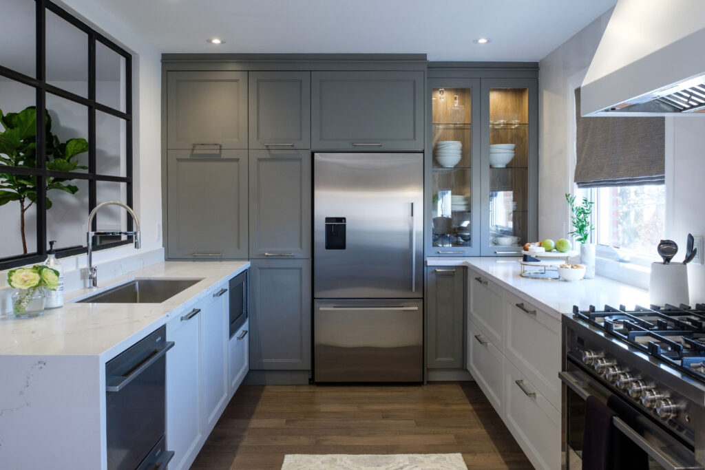 On Dana and Terry’s episode of Buying & Selling, the kitchen cabinets needed a sleek upgrade. Our solution: painting them a uniform, elevated color that blends with the rest of the main floor. Enter Benjamin Moore Chelsea Gray, which the popular paint company describes as a “well-dressed gentleman”—we can’t argue with that! Against the sleek stainless steel appliances and off-white cabinetry, this gray offers the perfect amount of contrast.