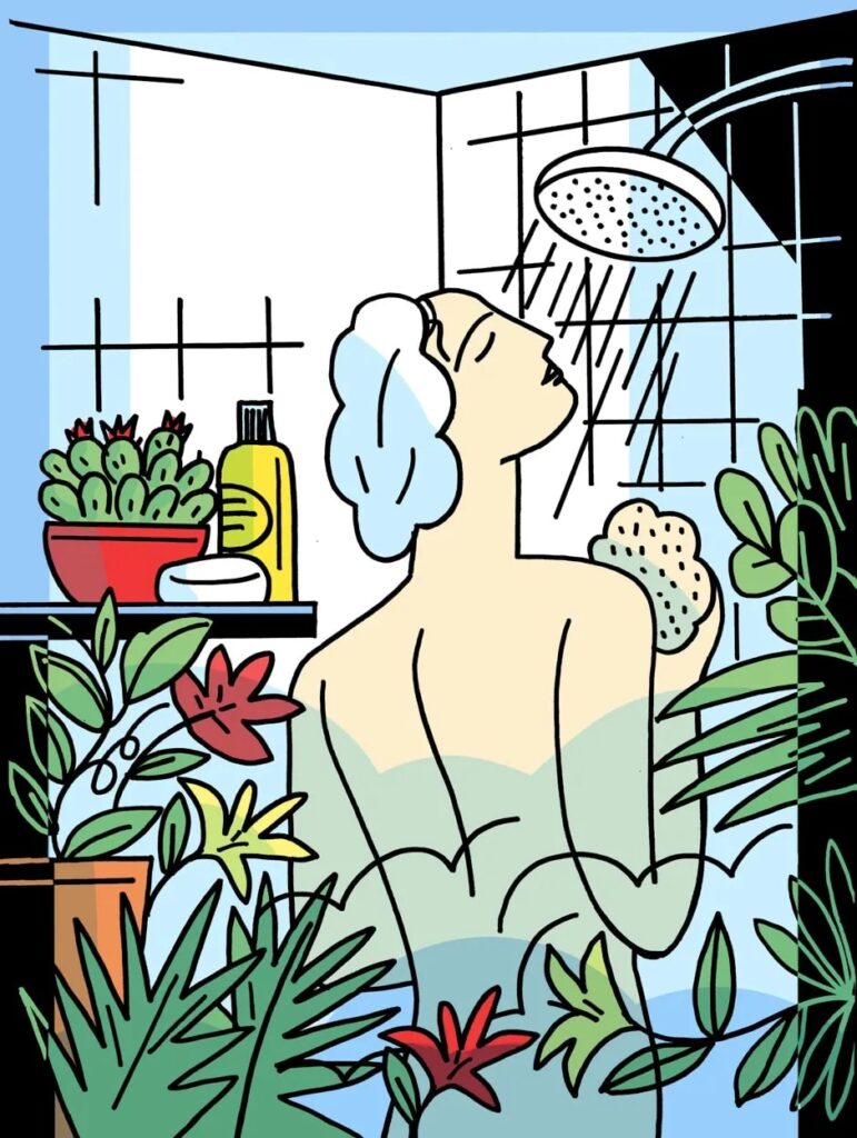 Think about it: With tiled walls, a drain, and a built-in water source, your shower is basically a ready-made greenhouse—so why not treat it like one? Turn your shower into an indoor oasis by installing a few pretty hanging or potted plants that thrive in low light and humid conditions, like ferns, spider plants, and orchids. Don’t have a green thumb? Take a page out of L.A.–based designer and lifestyle blogger Breegan Jane’s playbook and mix a grouping of faux plants in with a few real ones. “To fool the eye, I always look for real plants that are a little waxy,” she says with a laugh. “That way, it seems cohesive.”