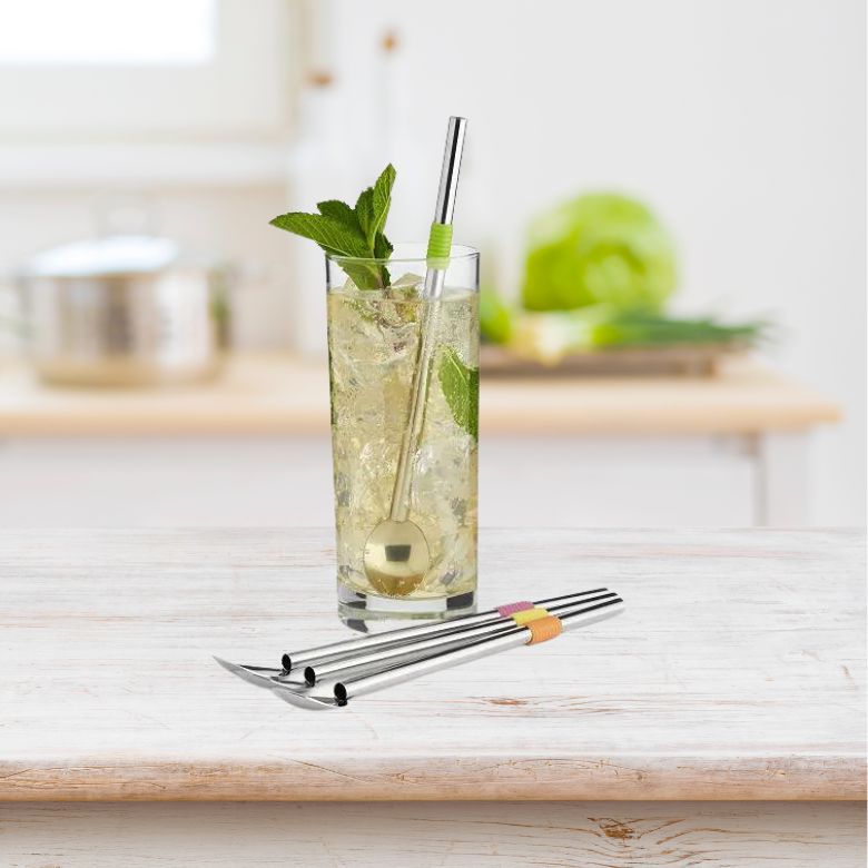 Design Imports Stainless Steel Spoon Straws, Set of 4