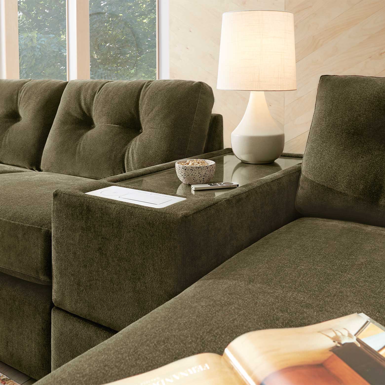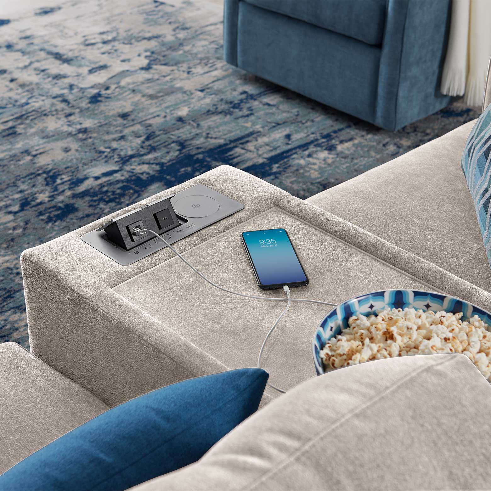 With fabric made from recycled plastic bottles, the ModularOne setup isn’t just eco-friendly, but also incredibly soft while still being design-forward. The plush chenille fabric, tech integration, and adaptable reconfiguration makes this your perfect relaxation destination.