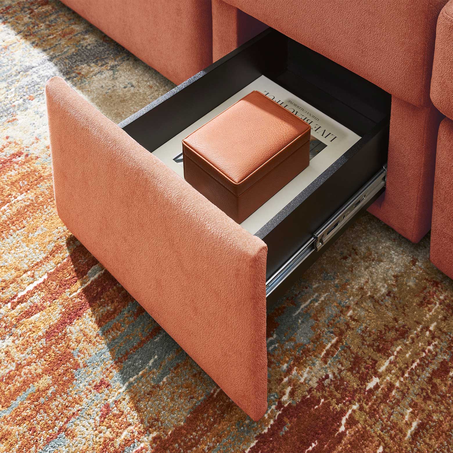 Discreet drawer storage makes for easy access to the things you prefer out of sight—magazines, tablets, remotes—so your living space can stay neat and organized.