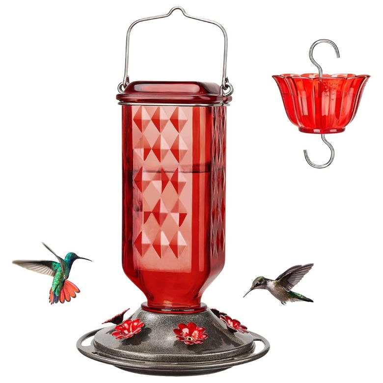 Attract more hummingbirds with this stunning hand-blown glass feeder featuring a vibrant design and five flower-shaped feeding ports for resting and sipping. Each piece is meticulously crafted by skilled artisans, ensuring lasting color and quality that won’t fade over time. Plus, with a clear, wide-mouth reservoir and easy-to-clean design, monitoring and refilling nectar has never been simpler. One satisfied reviewer summed up everything you need to know: “Thick glass, beautiful colors, no leaks, no ants, just perfect!”