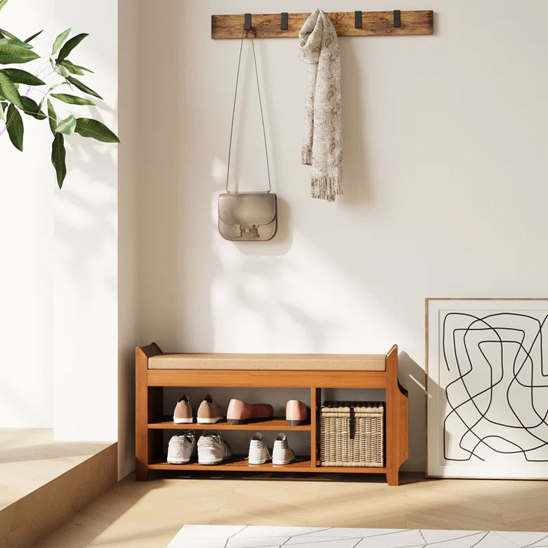 A closed-storage shoe rack that looks gorgeous in small entryways? Yes please! The half-moon rattan design is perfect for the mid-century modern home. And if you’re someone who loves shoes but hates visual clutter, this is a perfect option for you.