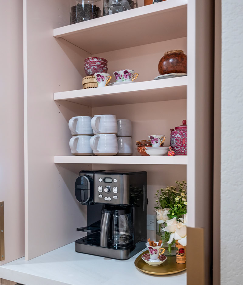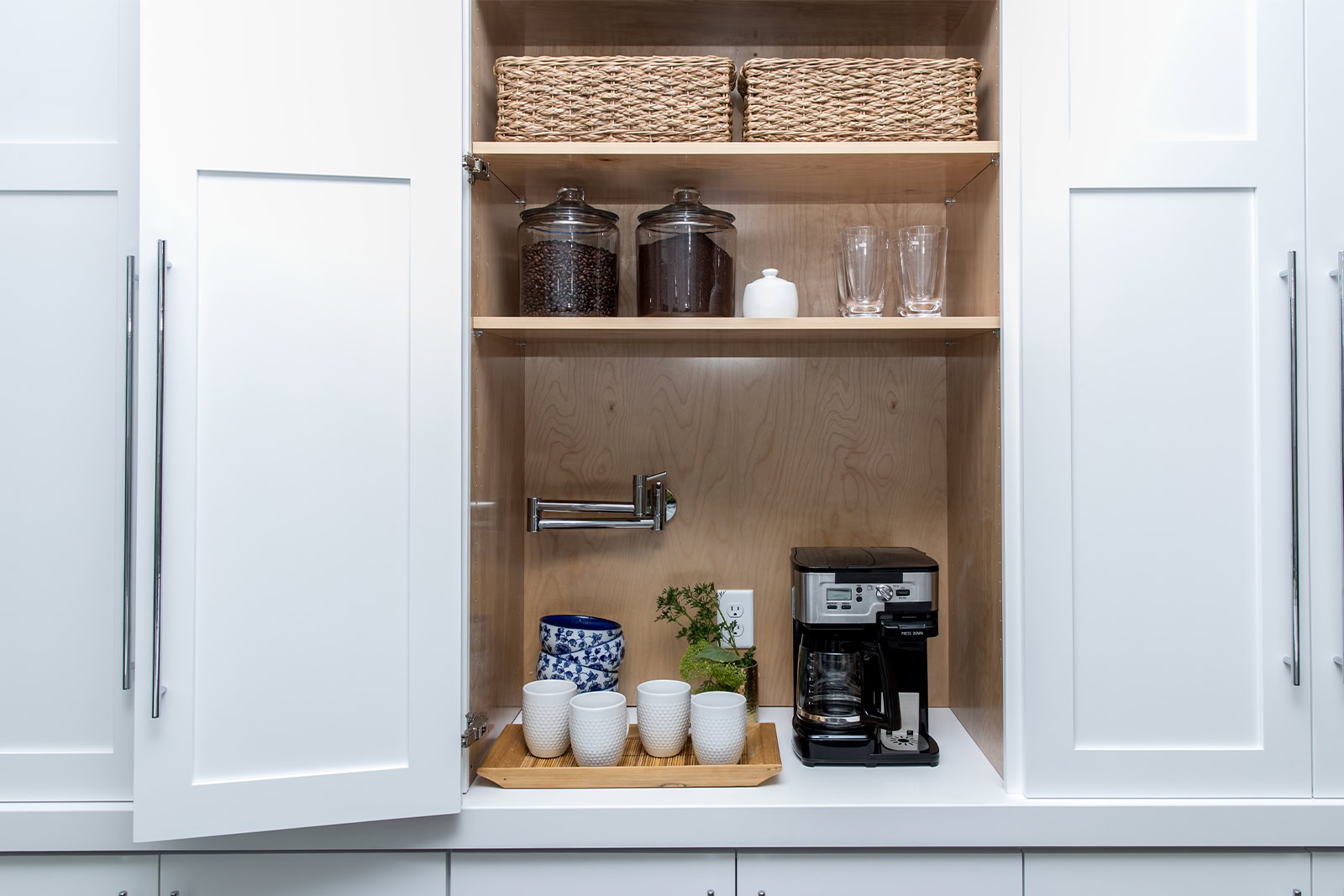 First things first: the inspiration. Take a look at some of Drew and Jonathan’s coffee bars they’ve designed on our shows to get the ideas flowing. Each one is different from the other based on the person, their space, and how they take their morning cup. And yours should be unique, too! After deciding your general vibe, it’s time to move to the next step. (And after it’s complete, you’ll look back and wonder how you ever went without a dedicated coffee station before!)