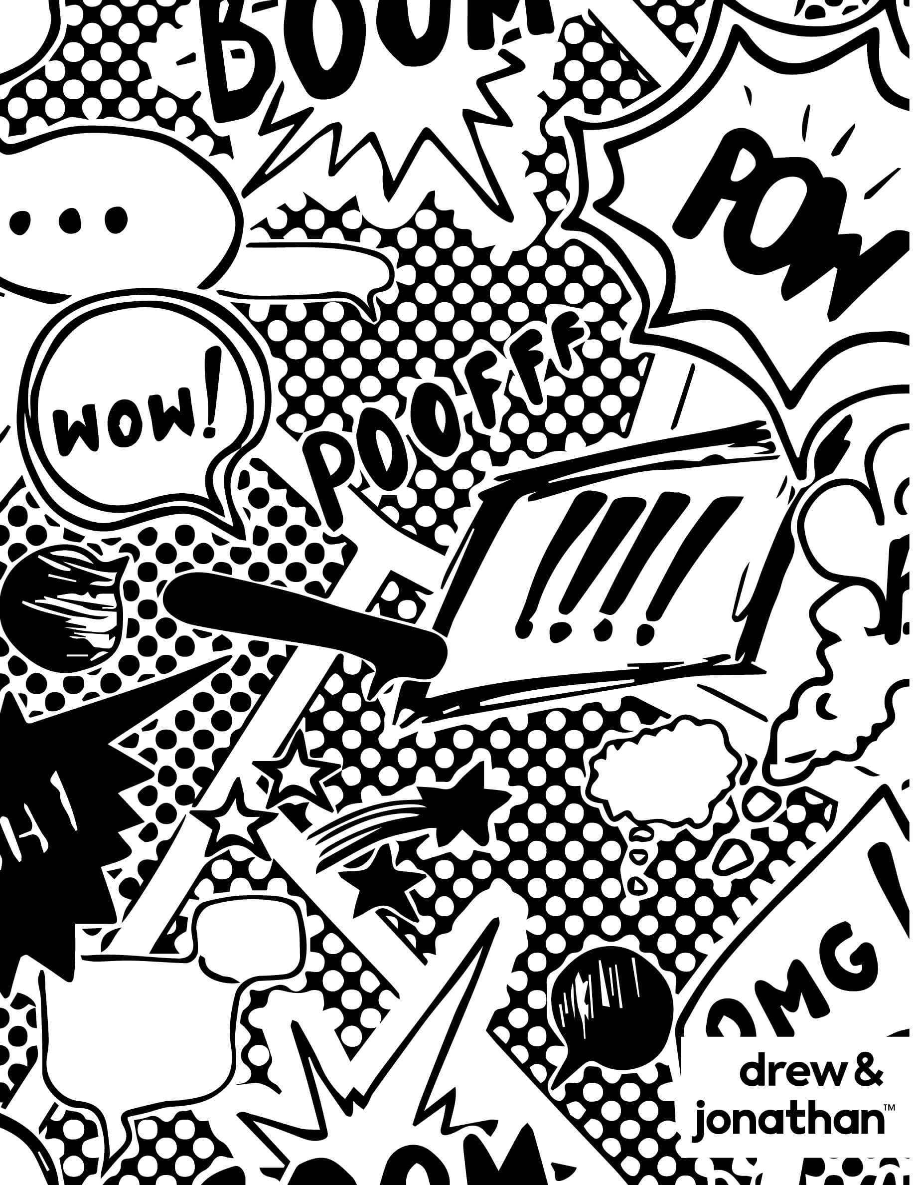 There’s something so fun and nostalgic about old-school comic book pages. You can color this one in the traditional orange and yellow theme, or instead go your own way and color each section differently.