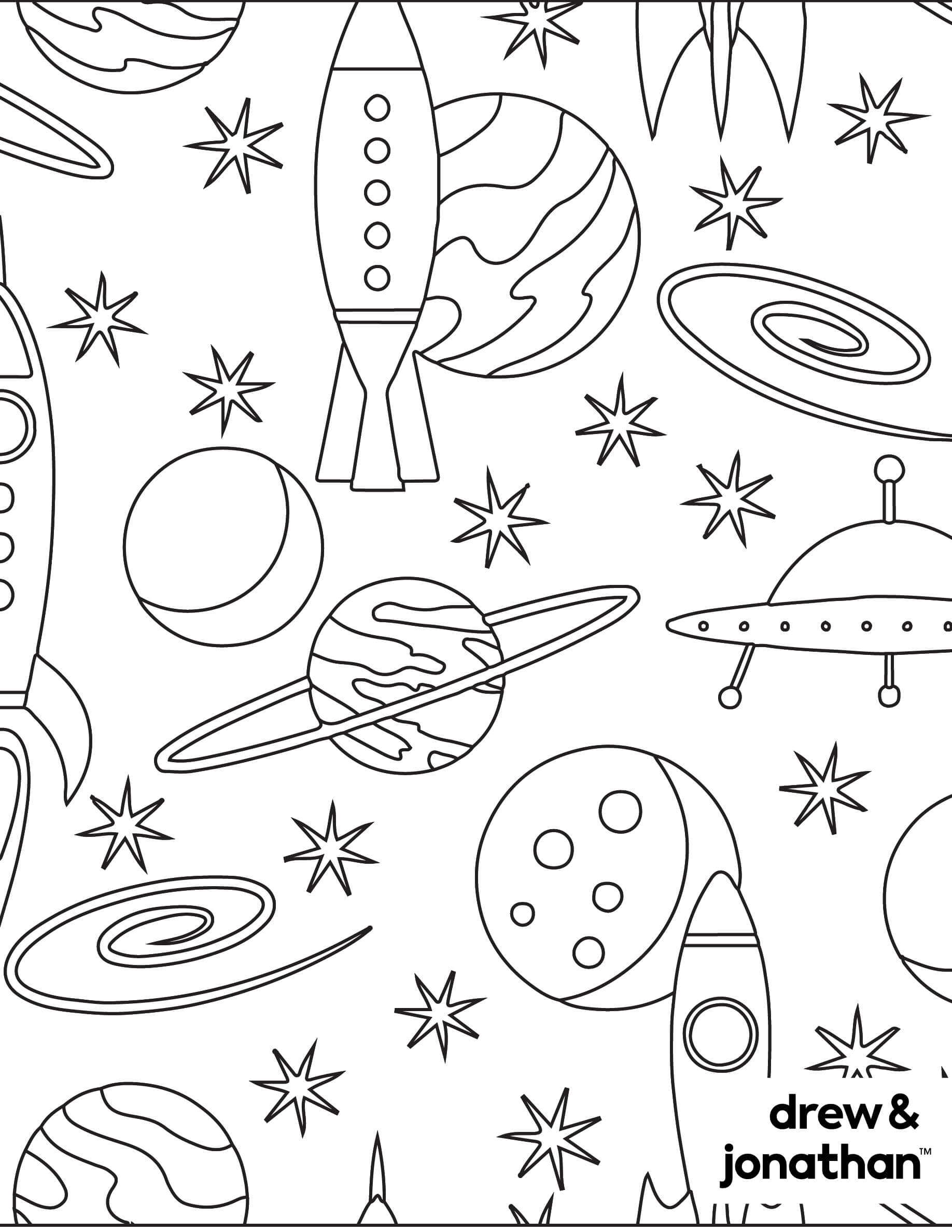 You can really “space out” when you start coloring this printable page. Consider getting some metallic coloring pens to shade in some stars and shiny rocket details, too.