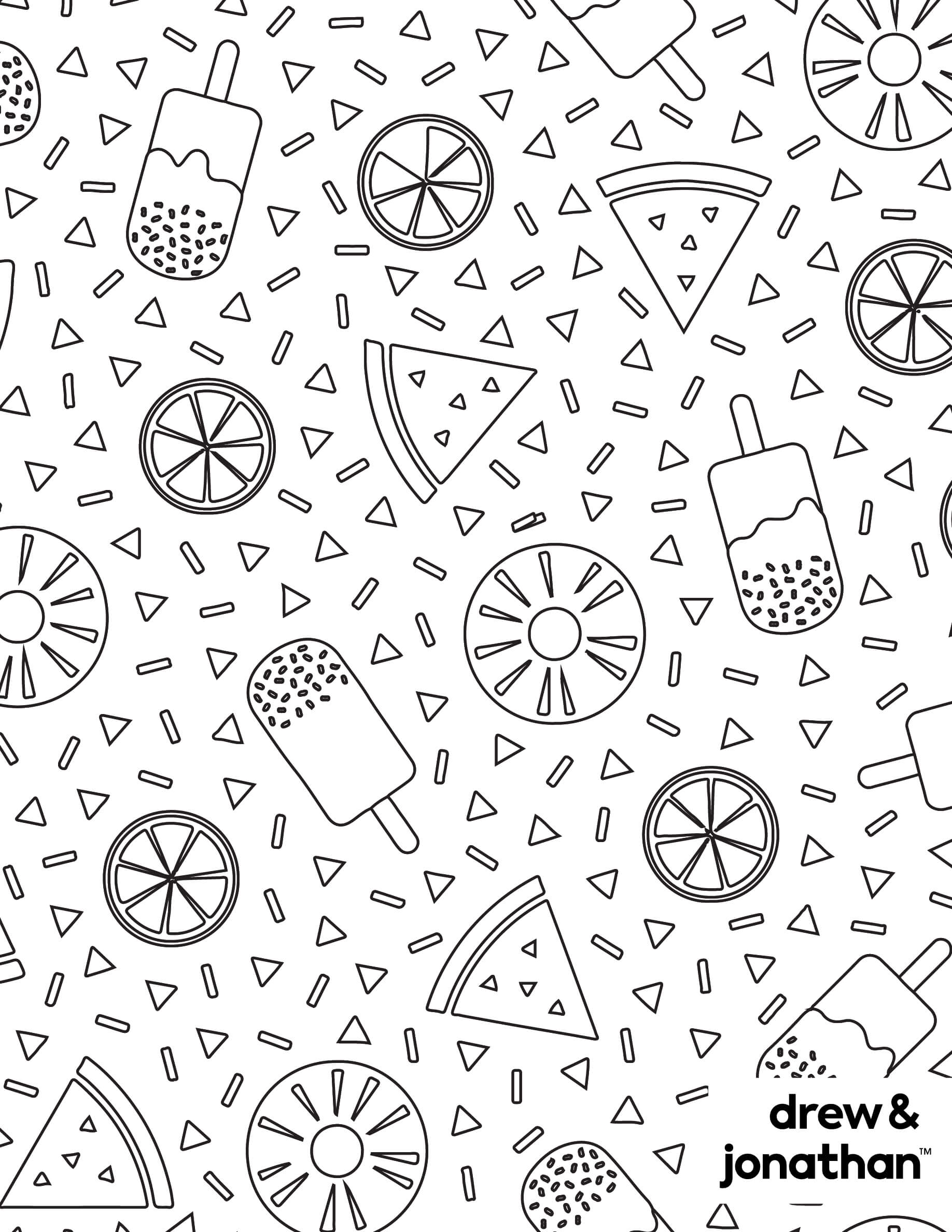 We don’t know about you, but this coloring page is making us hungry! This whimsical print is full of all your favorite summer treats: Popsicles, watermelon slices, oranges, and more.