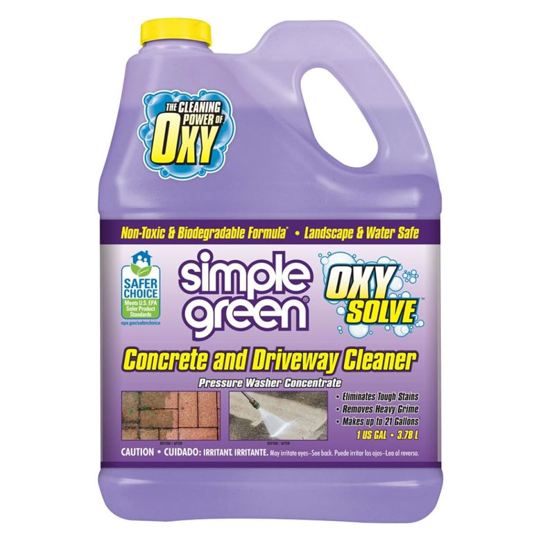 When aiming to clean your concrete garage floor to a like-new shine, it’s always a good idea to use a concrete cleaner dedicated to the job. Many brands, like Rust-Oleum, SimpleGreen, and Zep have formulas dedicated to cleaning concrete, which is porous and therefore more likely to hang on to dirt and grime than other materials.