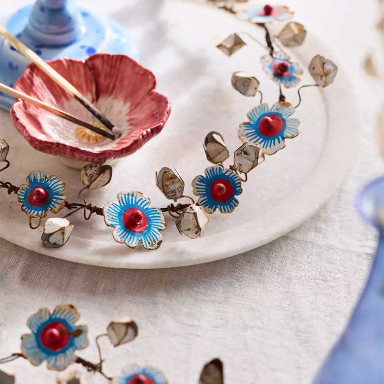 This gorgeous iron garland is a subtle but beautiful callback to the holiday through the use of bright blue and red colors throughout. The floral design will look chic and stylish on the table, especially while watching the fireworks. Wrap this garland around a banister or drape it across the top of a buffet table for a hint of color and texture.
