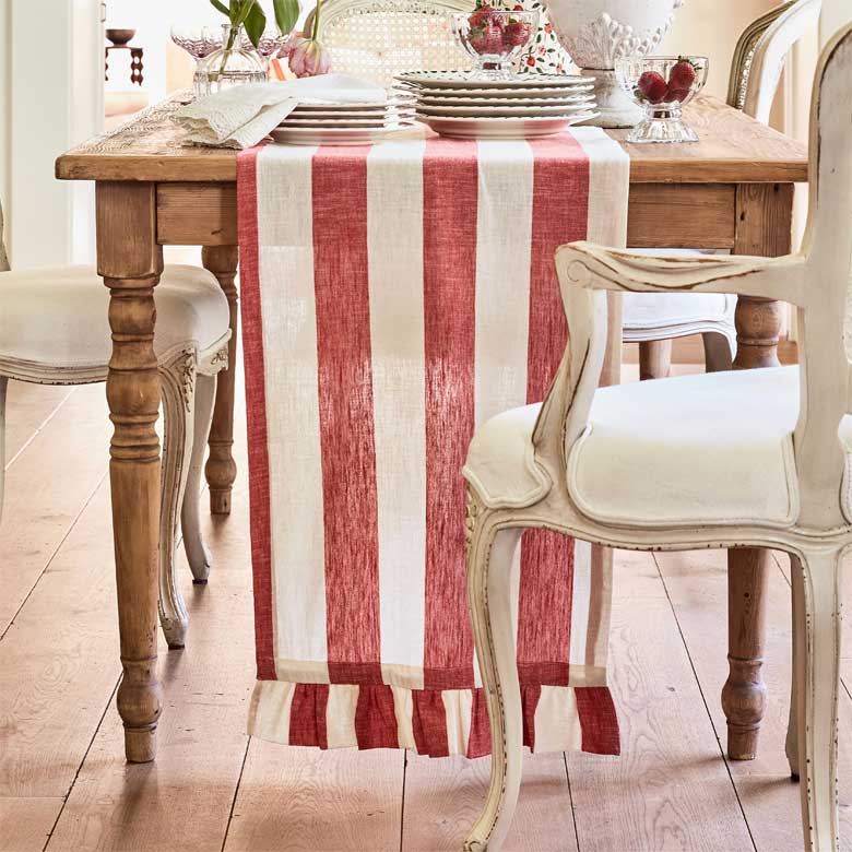 Red & White Stripe Ruffle Table Runner