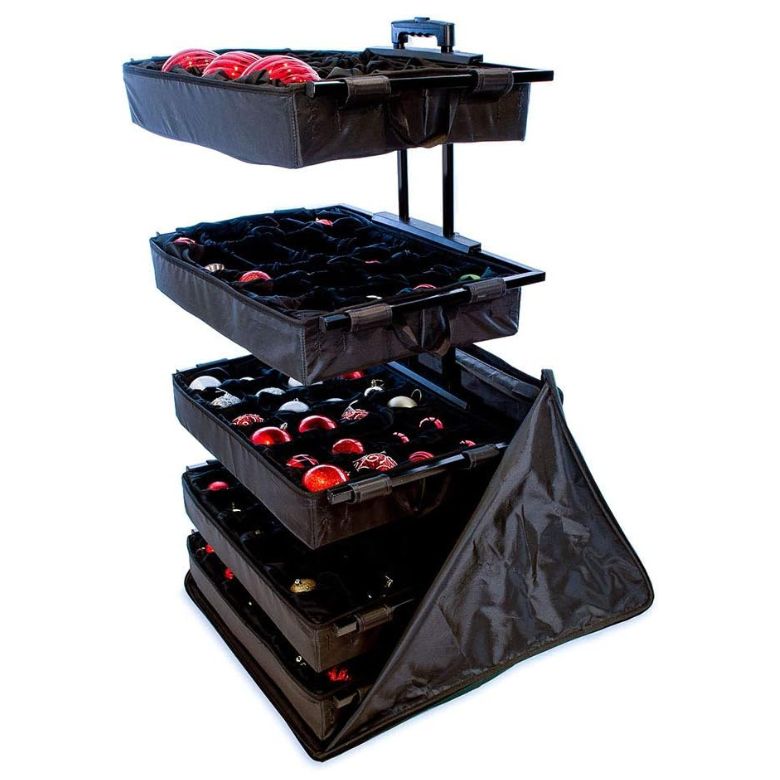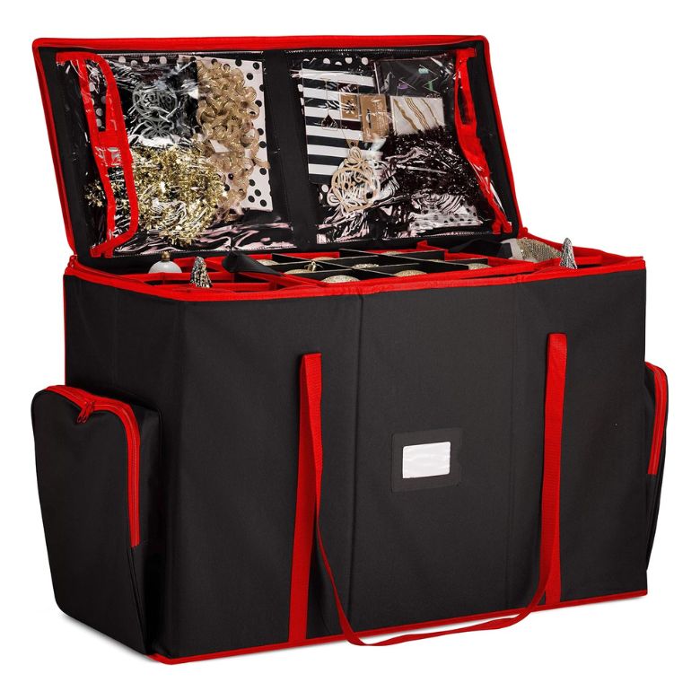 This spacious bag holds up to 72 four-inch ornaments, with removable, acid-free trays to keep them all safe and sound. It also features a handy top pocket with adjustable dividers that’s perfect for taller decorations like nutcrackers or nativity scenes. Best of all, its stackable design saves space while keeping everything organized and ready for next year’s festivities.