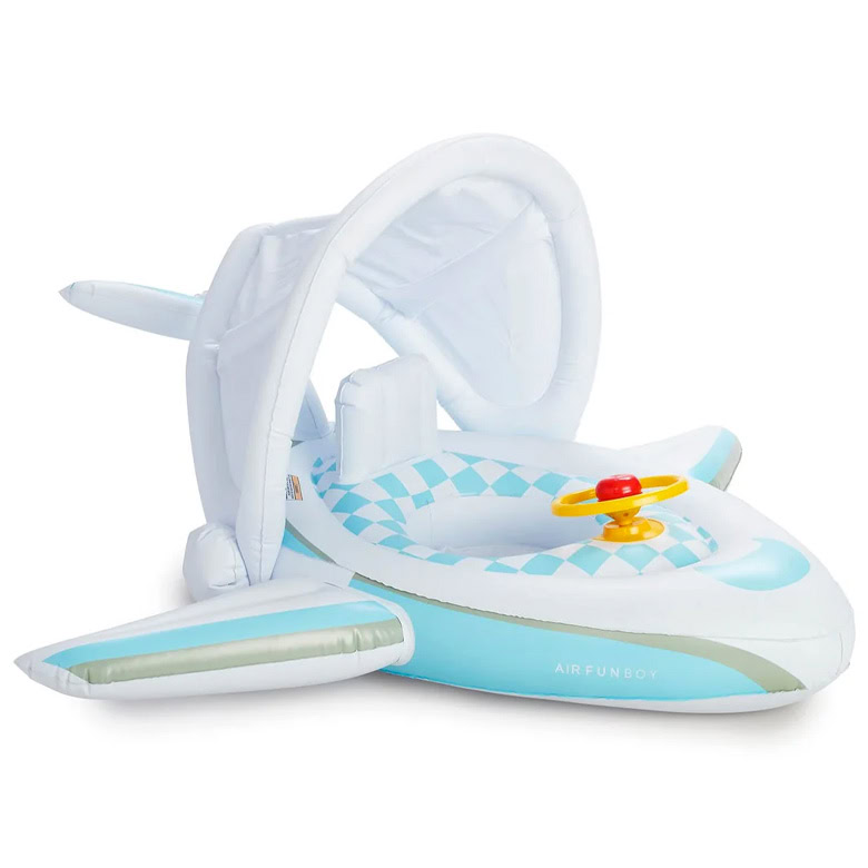 Parents and babies alike will love this adorable plane floatie. Sway alongside your tiny pilot while they honk the plane’s horn and pretend to fly. It comes with a removable sunshade as well as a deep saddle seat, backrest, and comfy leg holes. It’s designed for babies ages 1 to 2 years, but make sure you’re always swimming with your little one while they play as this is not a lifesaving floatation device.