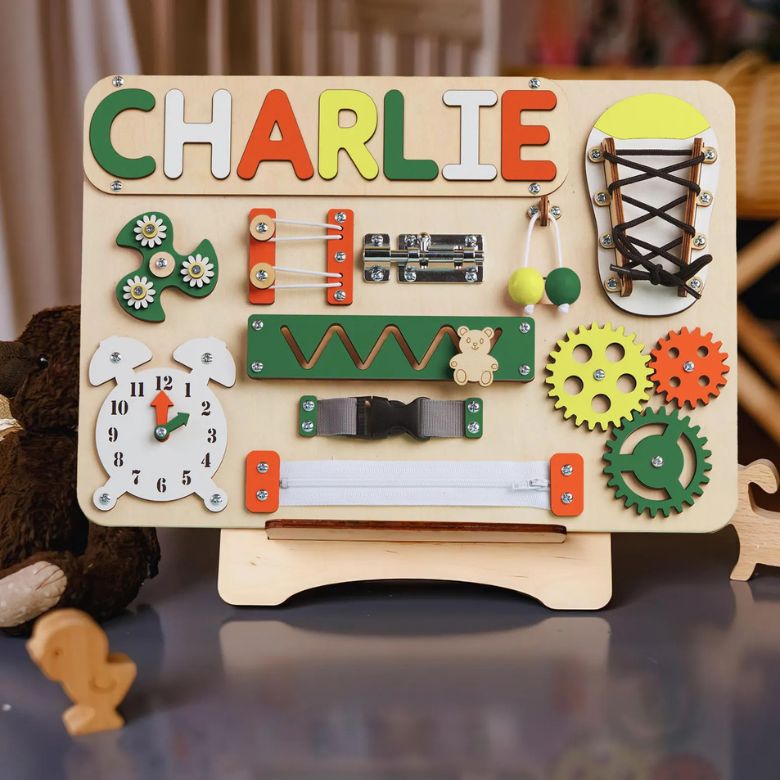 Finding great toys for little ones can be tough—on the one hand, you want something colorful, stimulating, and fun. On the other hand, you want a toy that’ll enrich their ever-growing mind and expand their skills. Luckily, this intricate busy board fills all those buckets. It boasts tons of activities to spark their senses and improve fine motor skills, like zippers, hook and loop fasteners, a clock, and more. But best of all, it’s personalized with their name for a toy that doubles as a heartwarming keepsake.