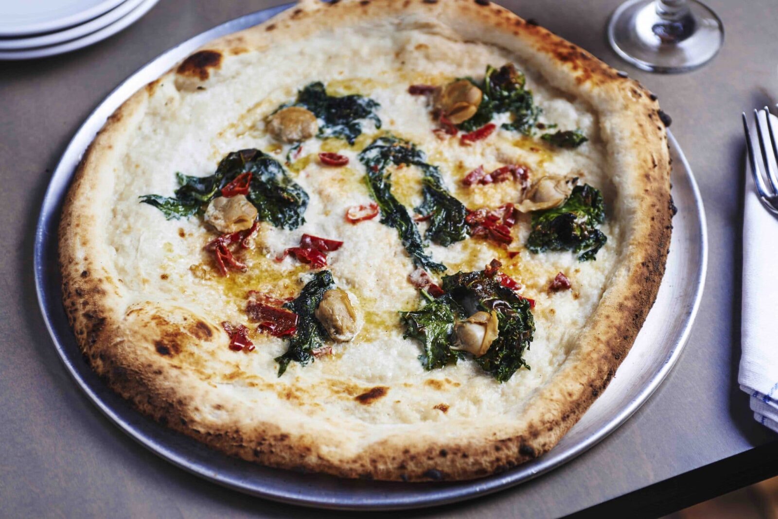 The secret behind the deliciousness of Nicky’s pizzas isn’t an ingredient but an appliance: Enrico, a four-and-a-half-ton coal-burning oven. It turns the housemade dough into New York–style pies that are the perfect balance of crispy, chewy, and smoky.
