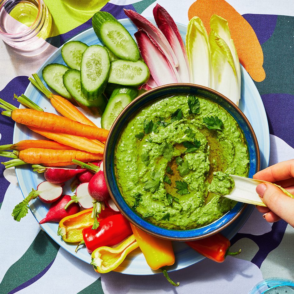 Build your menu around what you can find at your farmers’ market, like crudités and dips that use fresh vegetables. Buying local means a smaller carbon footprint for your food and fresher produce, too. If you can, walk or take public transportation to the market. And always BYOB (bring your own bag!)