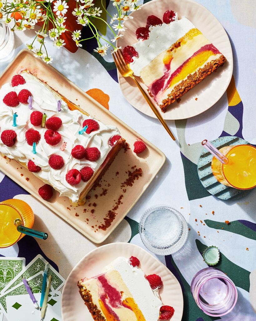 This stunning ice cream cake is made in a loaf pan. Sure, it’s on the smaller side for a birthday cake, but how many times have you left a birthday party and seen more than half a cake left behind on the cake stand? Making something that’s just the right size means less waste later on. And less food waste = a happier planet.