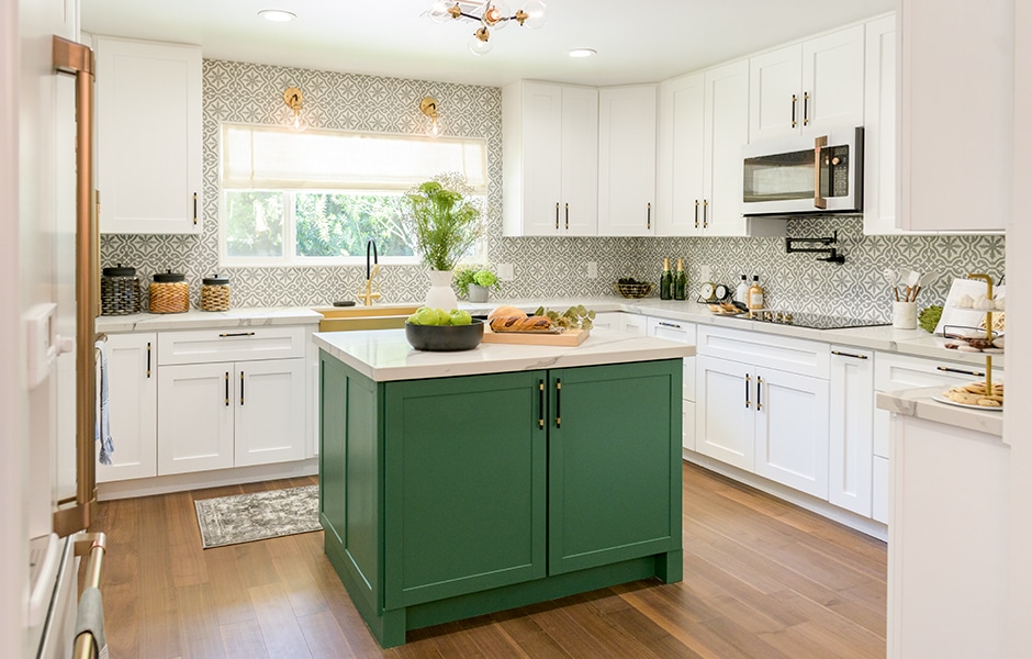 The home that Becky and Justin purchased wasn’t in their desired neighborhood—and had what we’ll generously call a “unique” layout—but they saw the potential in its square footage. We got to work making major structural changes, like reconfiguring the kitchen and converting the former garage into the master suite, to accommodate their need for several entertaining spaces.