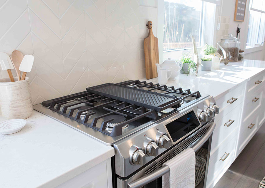 Sonja found her forever home in this sunny rancher, but it needed a few structural fixes before she could truly settle in. We switched up the layout to create an open-concept living room and kitchen area where her tight-knit family—including her sister, Michelle—can gather.