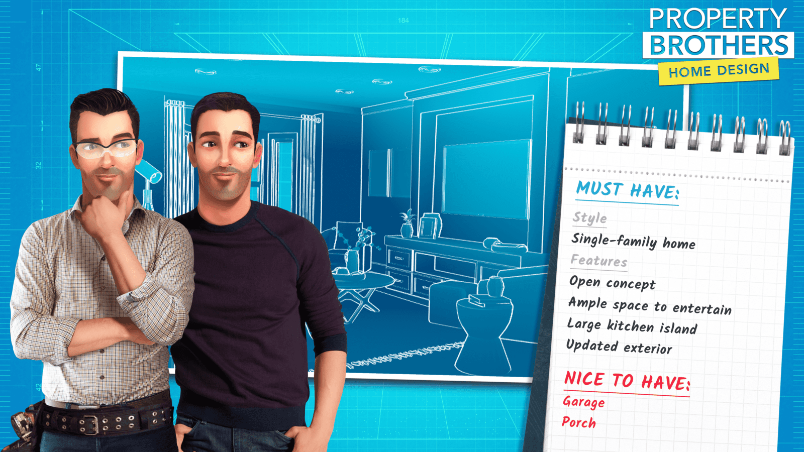 This was really important to us, because we love to keep things interesting in everything we do. Property Brothers Home Design is launching with several hundred puzzle levels built in, and we’ll be constantly updating the game with special rooms and design challenges so that you continue to be entertained and inspired every day.
