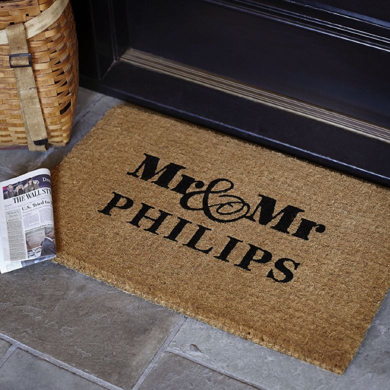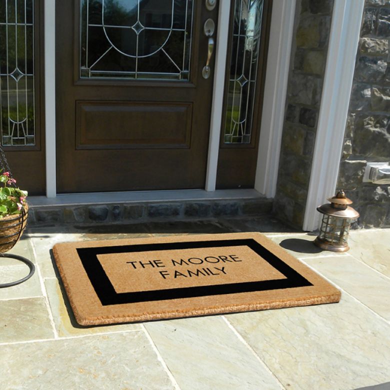 If you live somewhere a bit more public and would rather keep any identifying details private, you can opt for this impactful custom doormat from Wayfair. It instead trades your family name for the numbers of your home address. Choose from two versions of the coir mat, one with a natural background and one with an inky black palette.