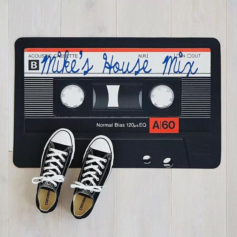 Calling all music lovers! Showcase your passion for a good melody (or a bygone era) with this retro mixtape custom doormat. The top of the design is inked with your name and the phrase “House Mix.” It’s a clever nod to an ’80s cassette tape, while the back boasts a grippy rubber finish. Pump the tunes and then cue the nostalgia!