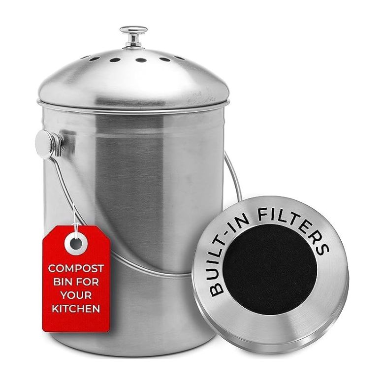 Chef’n’s 3-liter countertop compost bin is available in ceramic, plastic, and stainless steel, so you can easily find one that fits your style and material preferences. “I can leave it on my counter. No one suspects there’s garbage in it and there’s no odor due to the charcoal filter,” shares one Amazon user.