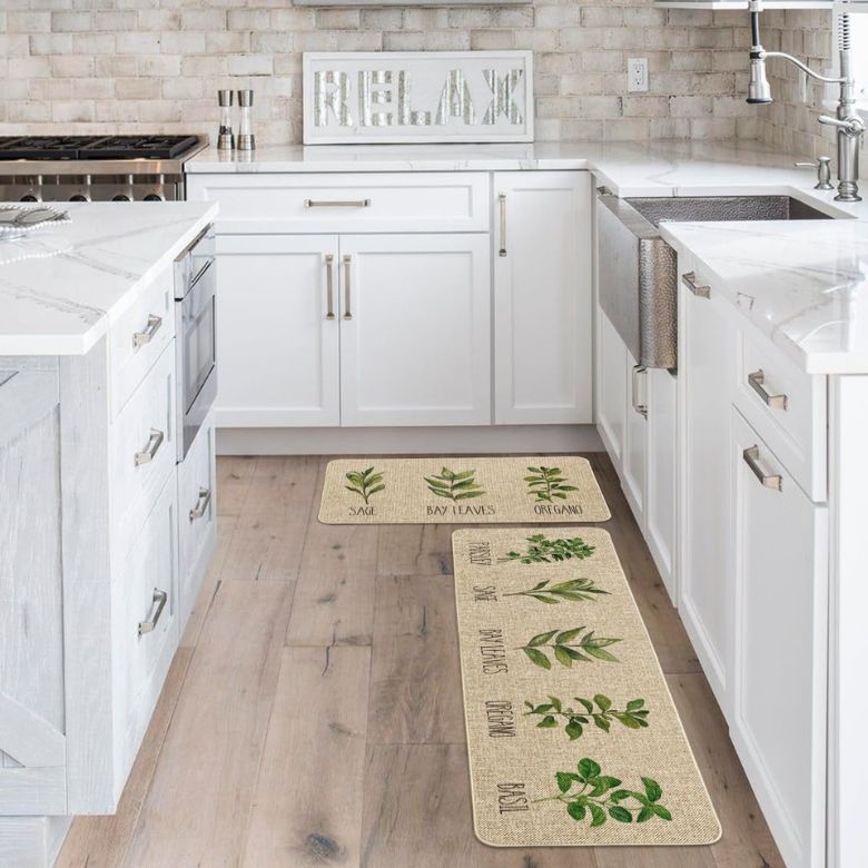 If you don’t spend a ton of time on your feet in the kitchen, you may want to opt for a woven mat over an anti-fatigue option. This one is crafted from a blend of jacquard woven polyester and cotton, and features a stylish leaf design that will instantly refresh your kitchen decor. Plus, it’s machine-washable for easy maintenance.