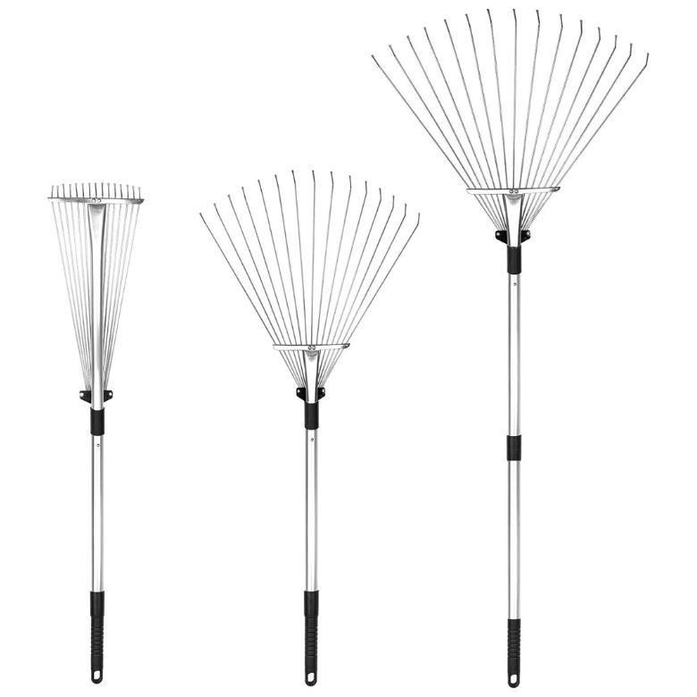 One reviewer raved, “The extendable handle makes it easy to reach tight spots or cover more ground without bending over. It’s lightweight but feels sturdy, and adjusting the tine width is quick and smooth. Great for leaves, pine needles, and general yard cleanup. Best part is that it barely takes up any space when not in use.”