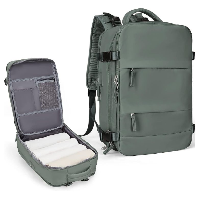 Not only does this affordable Amazon find come in dozens of colors, but its thoughtful touches also make it ideal for travelers. There are multiple pockets and a strap to fit over your roller bag handle, as well as a USB charging interface.