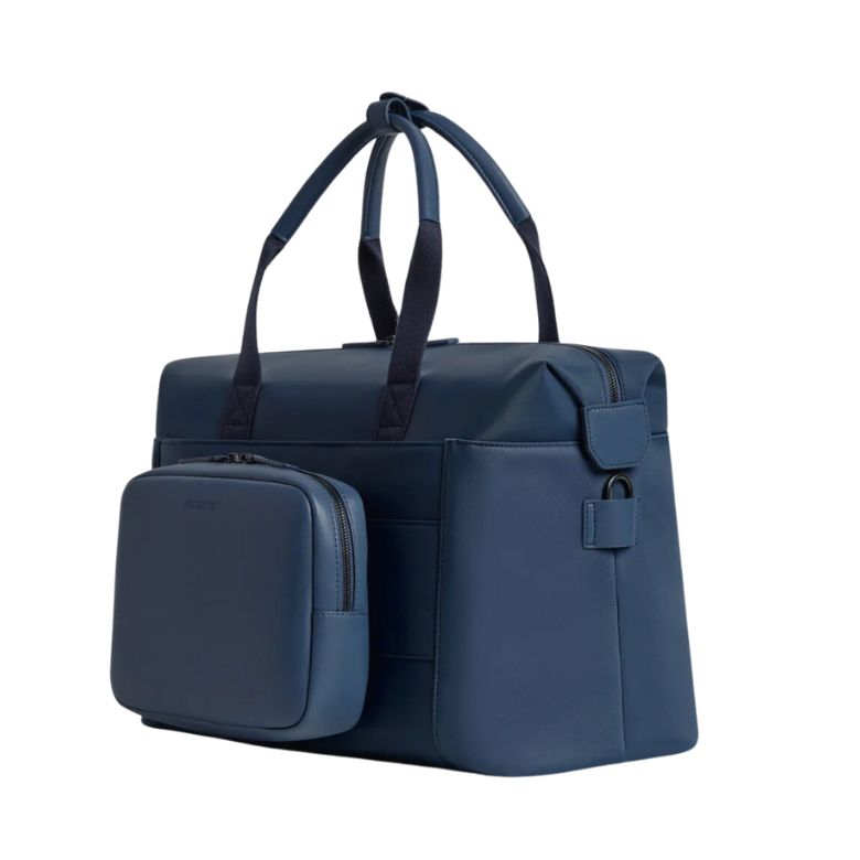 From the vegan leather exterior to magnetic snap closures and a separate laptop compartment, the Monos Metro Duffel’s touches provide that elevated feel. The coolest feature, however, is the smaller Metro Kit that snaps onto the outside of the bag. This provides extra space as well as easy access to whatever you need.