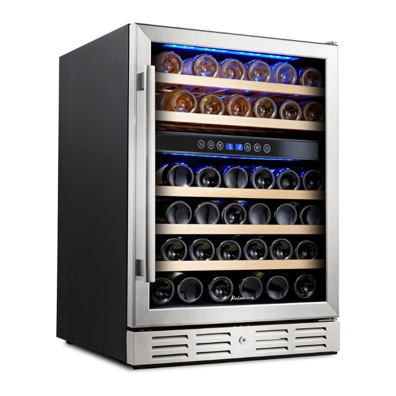 A bottle of red, a bottle of white—it all depends on your appetite. Either way, you’ll enjoy perfectly chilled wines with this dual-zone fridge featuring a 46-bottle capacity and FSC-certified wood shelves that reduce vibration and protect your bottles. The upper zone ranges from 40°F to 50°F and the lower from 50°F to 66°F, giving you the ideal temperature for every pour. With a temperature memory function, soft LED lighting, and a stainless steel finish, it’s a reliable, eco-friendly pick that looks great built-in or freestanding. Reviewers say this fridge is simple to use and thoughtfully designed. One shares, “The unit is very quiet. Like the space proportion for the bottles—racks are easy to pull out. Dual temp is reasonably accurate.”