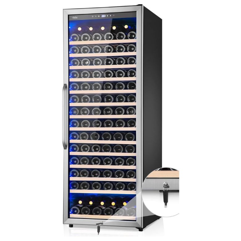 With space for up to 154 bottles, this fridge makes organizing even the biggest wine collections super simple. Its advanced compressor cooling system maintains a steady 40°F to 65°F temperature range for precise control, ensuring your wines stay at their best. Customize your storage with 14 removable wooden shelves and show off your collection in style with LED lighting and a sleek stainless steel door. The versatile design works just as well built-in or freestanding, making it a smart pick for serious collectors. Users say this fridge delivers on both looks and reliability. One shares, “The digital temperature control is super easy to use, and I love that it has a temperature memory function, so it remembers the last setting even after a power outage. The double-layer glass door not only looks great but also helps maintain the right temperature inside.”