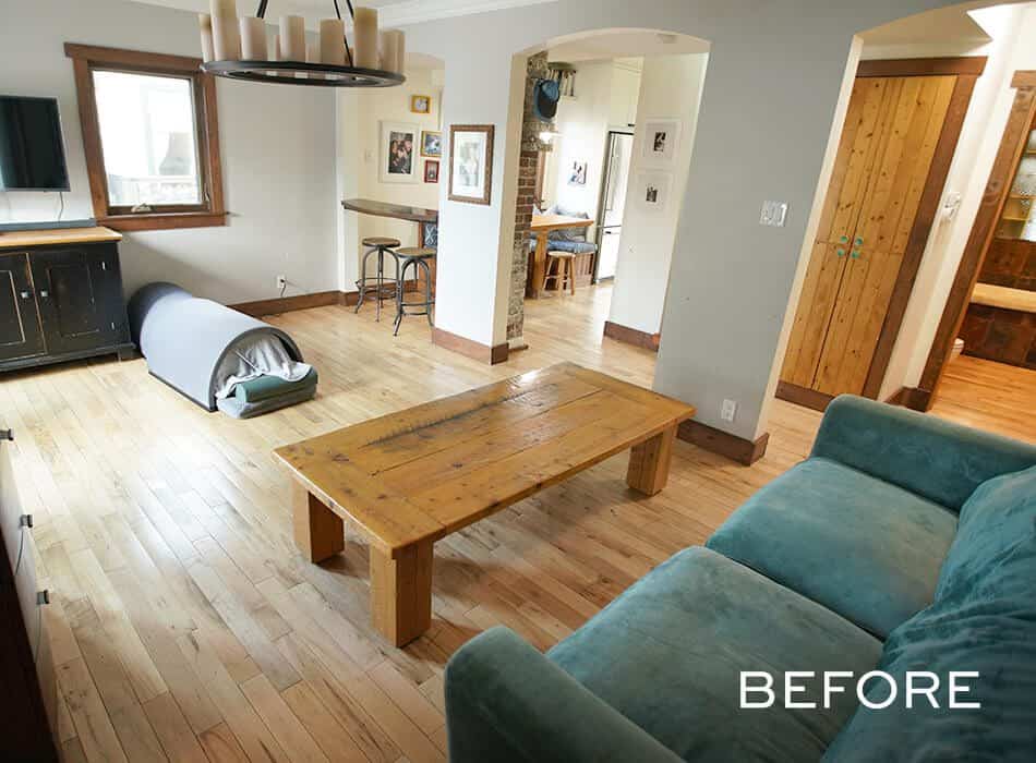 Aliya and Chris have lived in their cozy, unique family home for 15 years of major life milestones, including their wedding in the backyard and the birth of their three kids. They want to stay and make the smaller footprint work, but with only two bedrooms for five people, limited storage throughout and tight space, the house needs help. We revamped the living room, kitchen, dining nook, basement and kid’s bedroom to help Aliya, Chris, and their kids stay in the home they love.