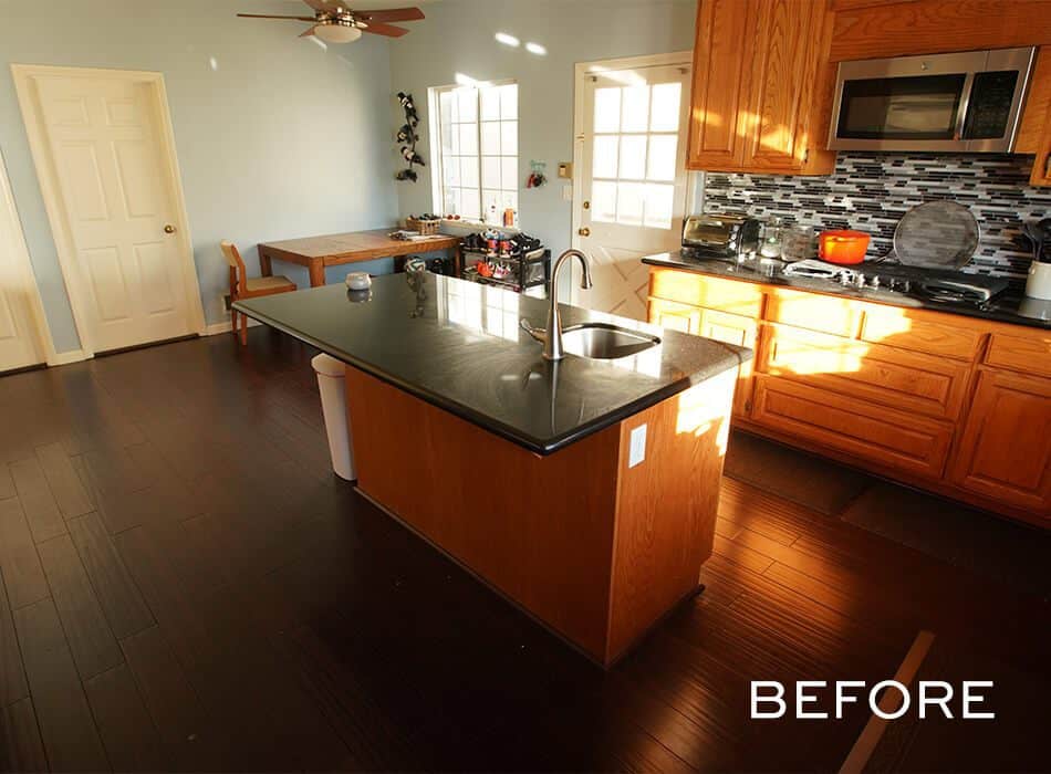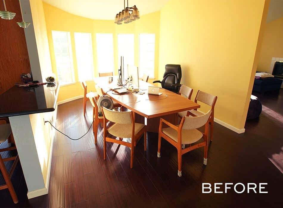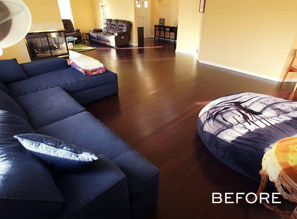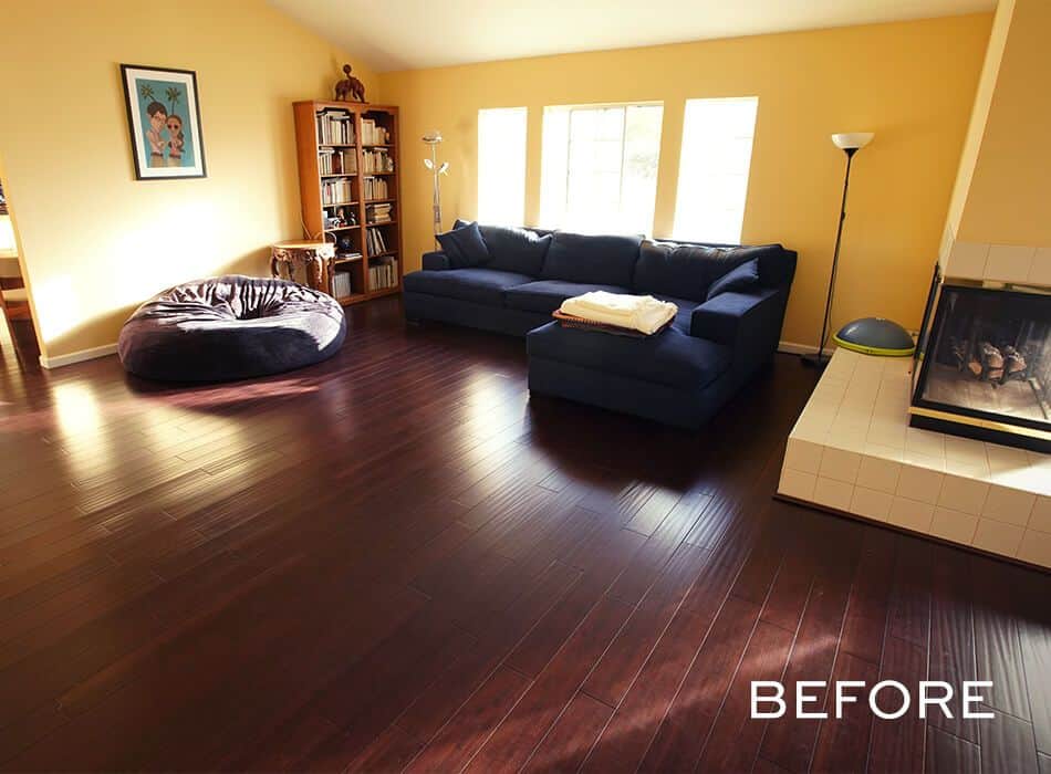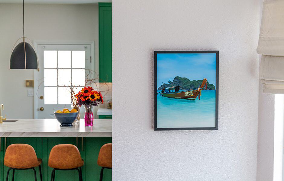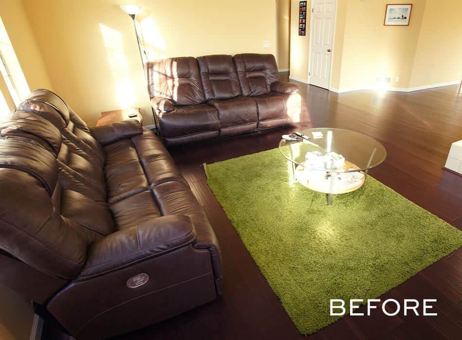 Sometimes, you can go too open-concept and lose all sense of how a home is supposed to flow from one room to the next. Upon entering Allie and Ben’s house, you were lost in space: the living area had a three-sided fireplace and a half-wall as its only defining characteristic. We took out the fireplace and created a new feature wall with a real wow factor: a floor-to-ceiling mural that nicely complemented the colors throughout the rest of the renovation.