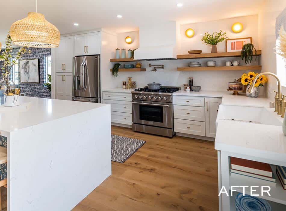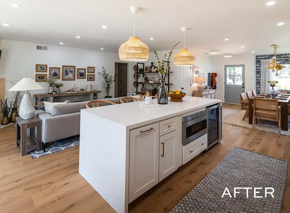 Amber and Alex are high school sweethearts who wasted no time finding their L.A. dream home: a bungalow that’s close to both of their families, who they wanted to have over for holidays and get-togethers. And that was the problem: all the space was in the wrong places! We helped open up their main living area to give these young lovebirds a cool, modern home that reflected its caring owners.