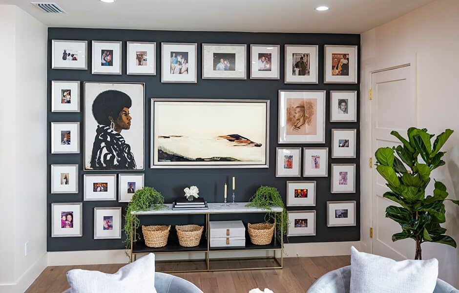 Derrick had kept his family artwork nailed to the wall—literally, with no frame—and we all agreed it needed a better and more deserving home. So, we dedicated an entire gallery wall to showcase not only the beautiful profile—now framed, but with its rough edges still showing—but also Anthony and Derrick’s beautiful family.