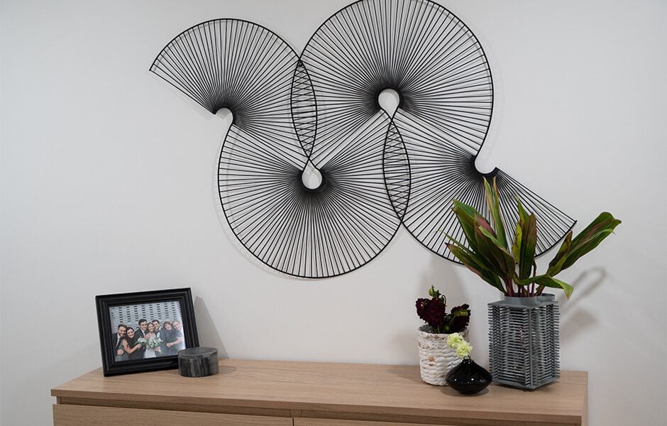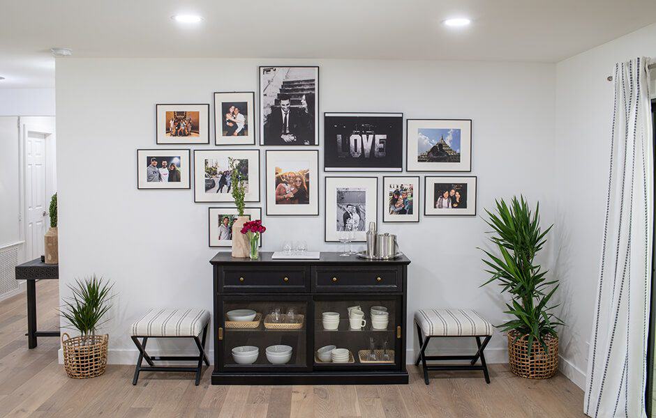 Mike and Ashley had already built memories in this home, long before it became their own: it was where Mike picked Ashley up for prom, and where Mike asked Ashley’s dad for permission to marry his daughter. We couldn’t overlook the wealth of milestones their home held, so we created a gallery wall to celebrate their milestones and create space for new ones, like the bundle of joy on the way!