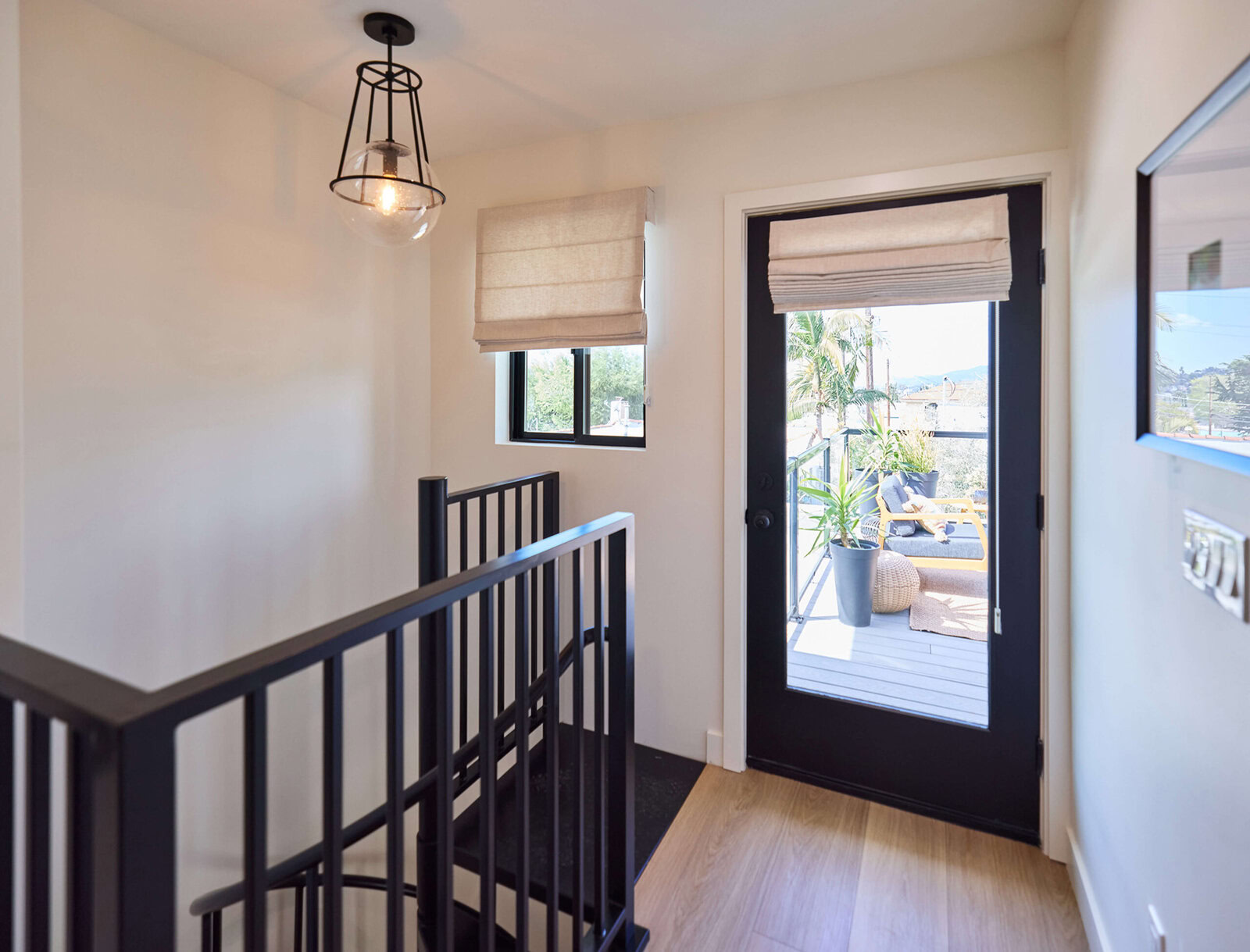 Originally, Kristie and Tom wanted to close off the exterior stairs, but they decided to take the Brothers’ advice and leave them as a second entrance into the rental. They also added a spiral staircase inside for added design value. This created a gorgeous landing that frames the door to the patio nicely.