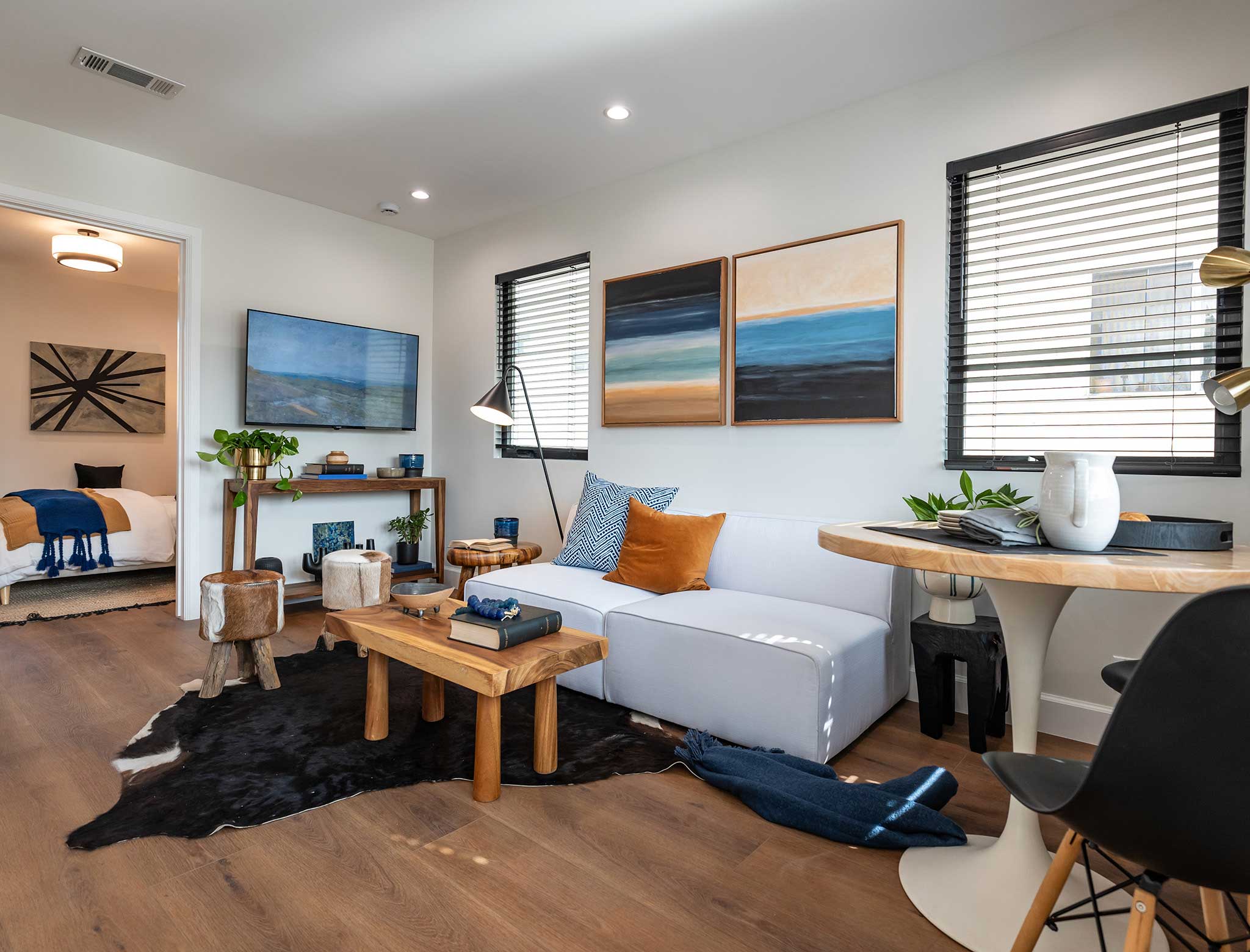 But along with fixing the damage, they also had to rethink the interior layout as well. The bottom floor’s 1-bedroom and studio apartments were going to be combined to adhere to permits. The two upstairs 1-bedroom apartments stayed as-is, but the layouts were rearranged to make better use of the space. It was certainly worth it, since the spaces need to be both beautiful and functional for renters.