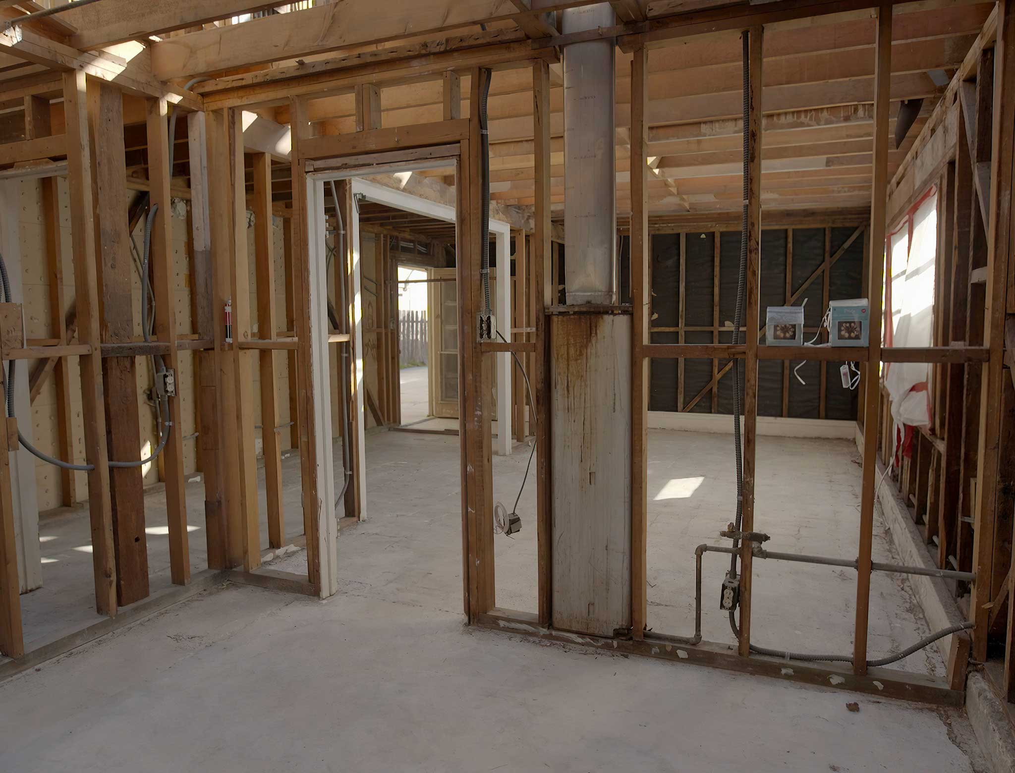 After calling Frank with the news, he and the Bros immediately got to work. Because of the severity of the damage, there was a ton to get done. From gutting to redesigns, calling on contractors, electricians, and consulting with Drew and Jonathan and their experts, this property rebuild was a doozy. Of course, no reno this large is without its hiccups. Just as they began gutting the property, they found major termite damage. It called for a total reconstruction of the outdoor deck and stairs. This definitely put an unexpected dent in the budget, but they did their best to cut costs elsewhere to make it work.