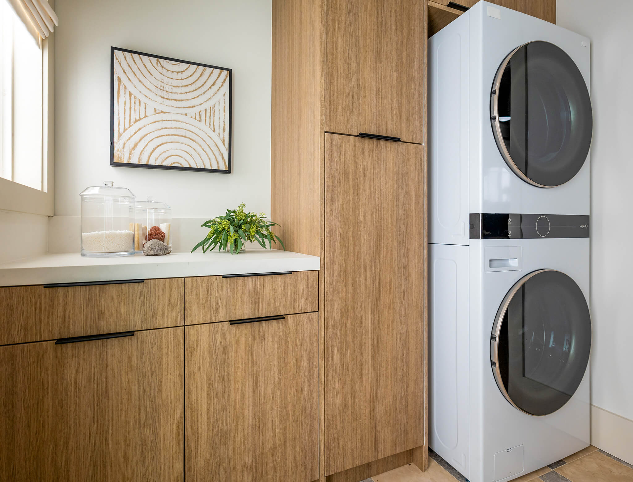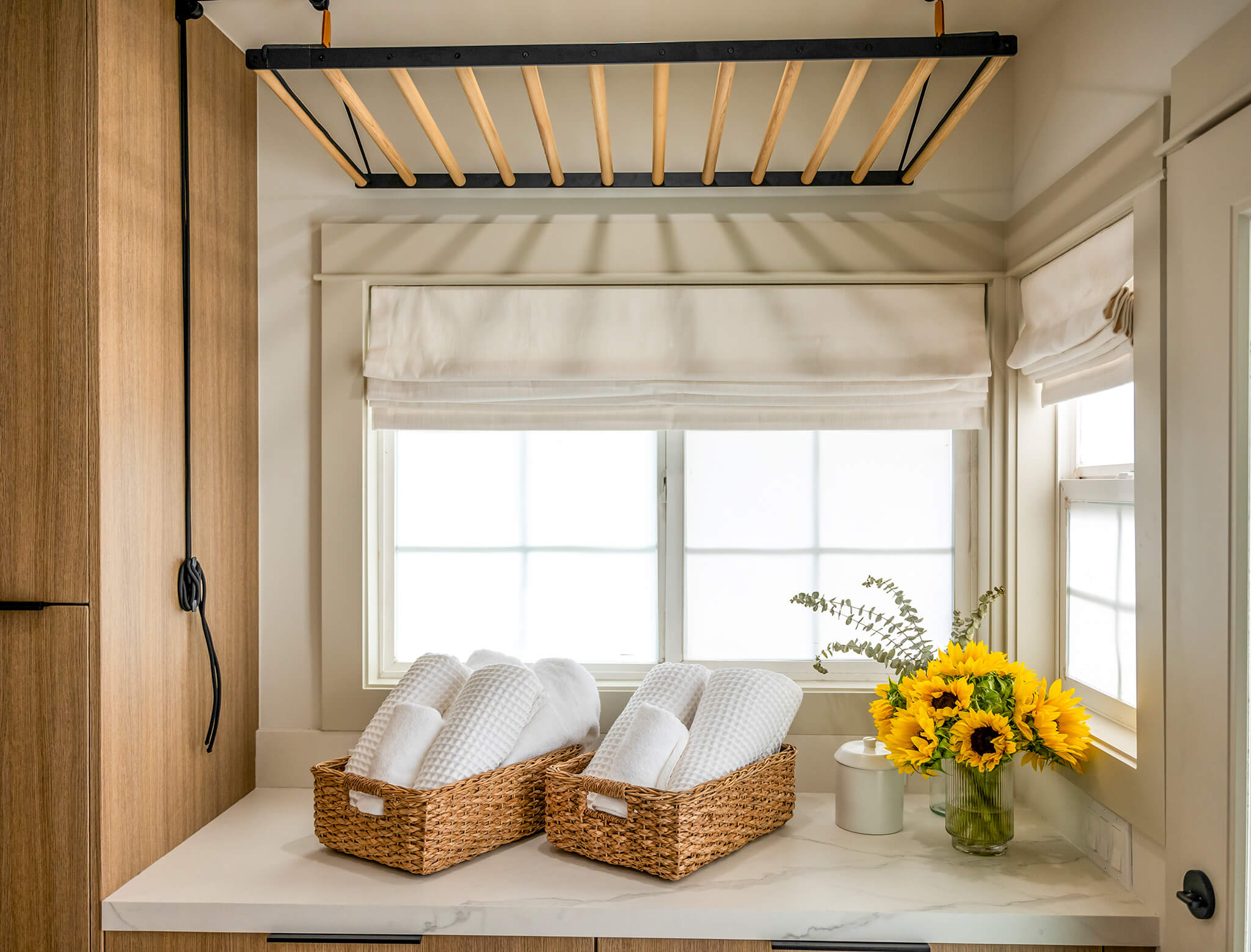 When it came down to it, Camryn knew that what Mia needed was a space that better suited her style and needs. Even in the small details, Camryn and Milo knew there were improvements they could make that would improve Mia’s happiness in her home. From replacing the old double mini-fridges with a beautiful custom panel French door refrigerator to finishing the laundry room with functional accents like built-in drying racks, each choice was one that was thoughtful and impactful.