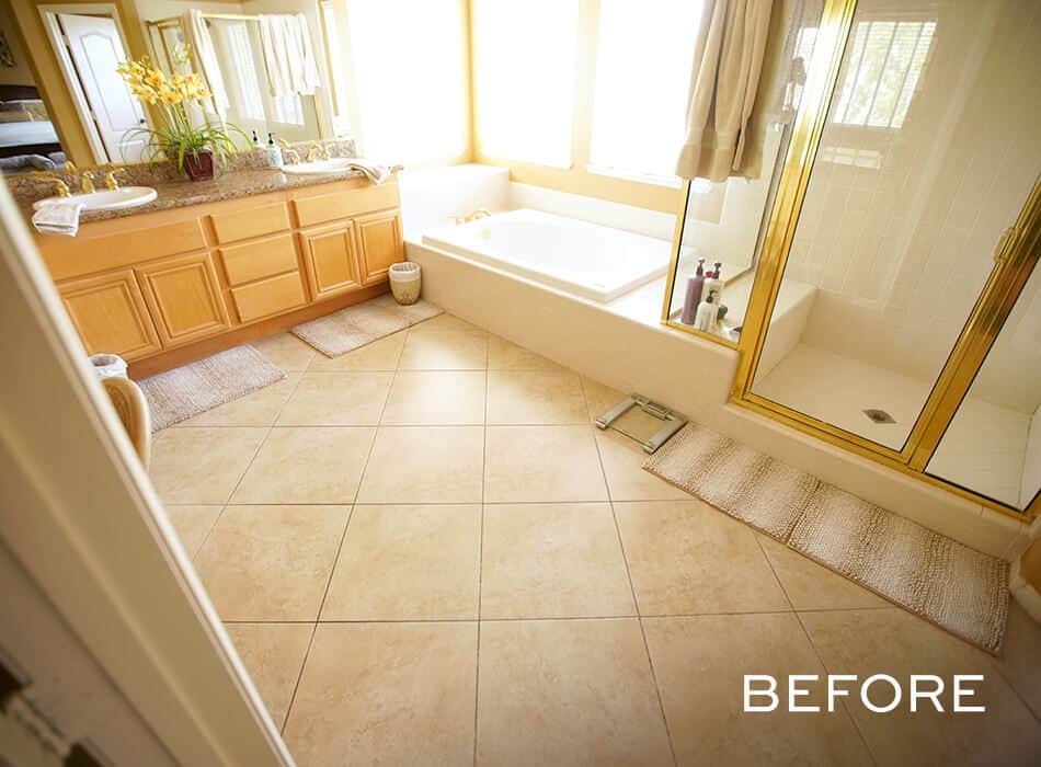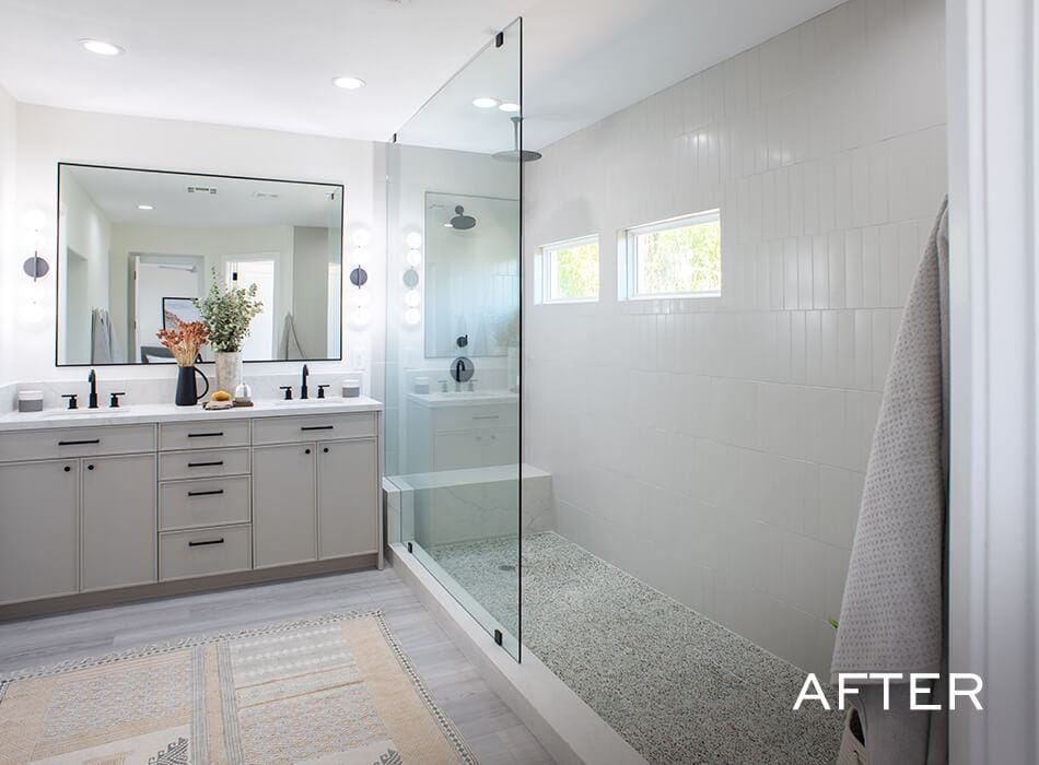 J.J. stands at 6’10”, but he’s often crouching in the shower trying to get under a shower head designed for someone a foot shorter than him. Along with 6-foot-4 Carlee, these two needed a better fit, and we gave it to them: the biggest shower we’ve ever done, in fact. Now, they can walk right in and not worry about dodging any low-hanging fixtures.